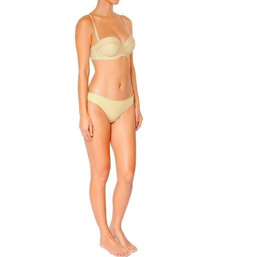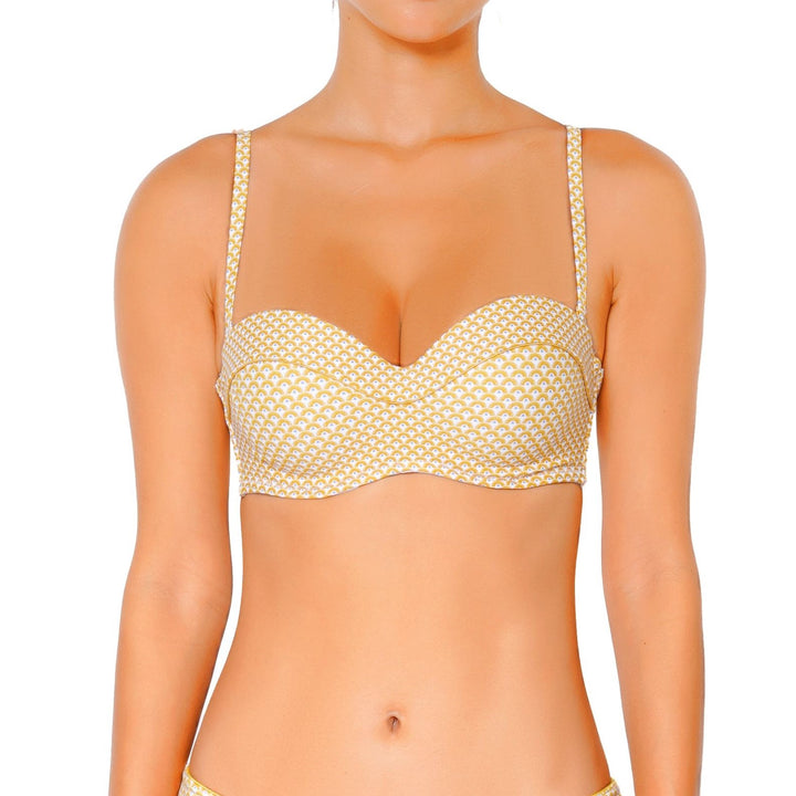 Introducing the latest Sunkissed Collection from Huit. This chic collection embodies the essence of sun-soaked vibes with its vibrant hues and modern design. The Sunkissed bandeau features padding for added support and shape, ensuring a flattering silhouette. Featuring underwire support, catering to our larger breasted ladies. With removable straps, you have the flexibility to customize your look – wear it as a classic bandeau or opt for extra support with the straps. The ultra-feminine contour guarantees a comfortable and flattering fit, enhancing your bust while ensuring optimal support with incorporated underwire for a secure hold.