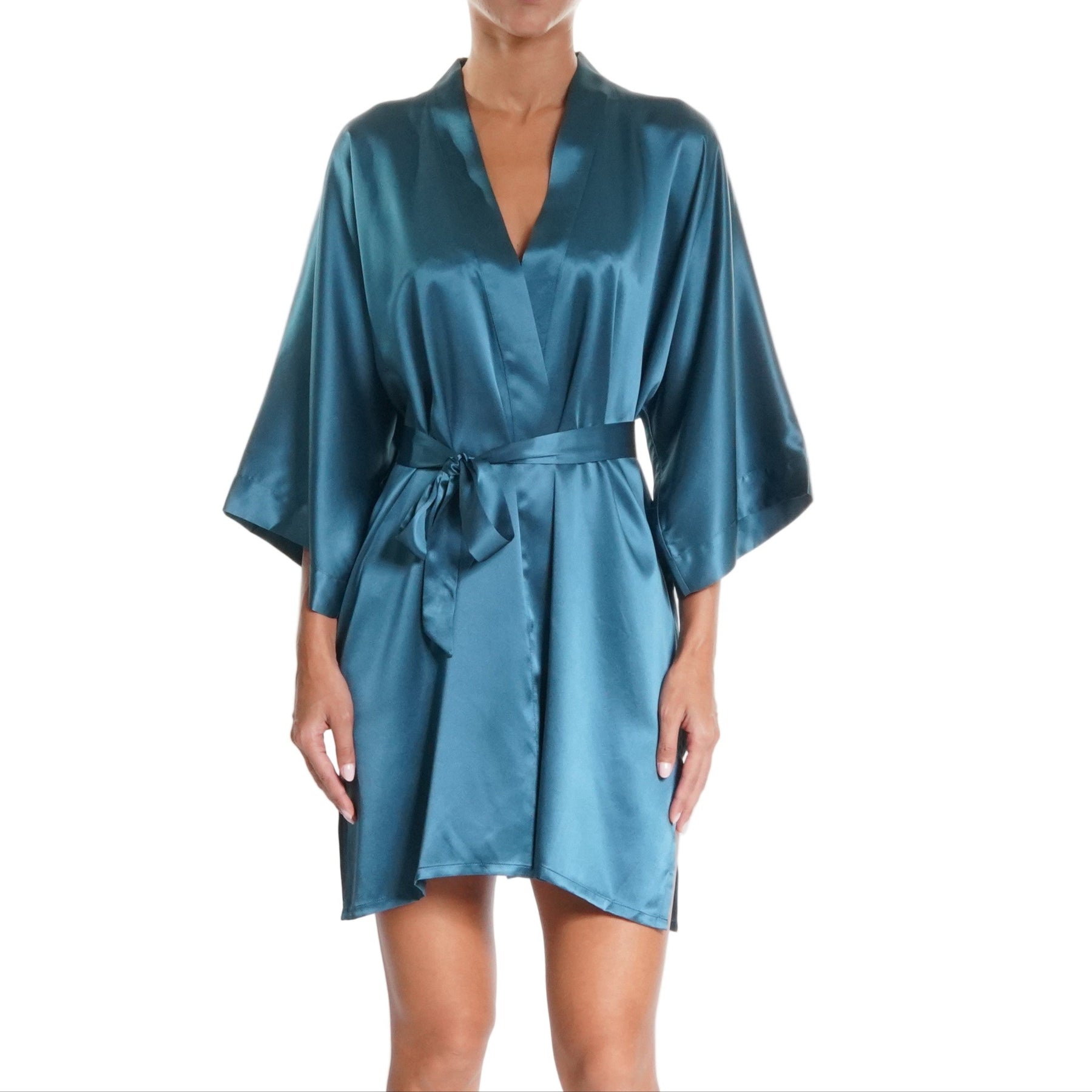 The kimono style robe is elegant, feminine and sensual. The Samantha Chang heavy weight silk charmeuse has a soft touch and luxurious feel to the bare skin.  It can be worn all year round.