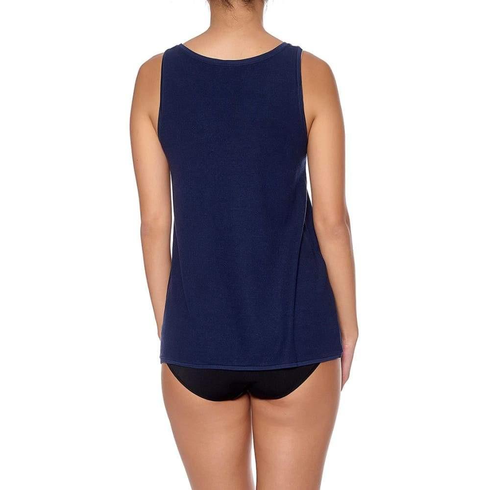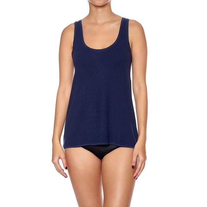 Made with a luxurious European Modal that is exceptionally soft to the touch. Douceur is a unique fabric with similar properties to cotton. Wide Binding Ribbed Trapeze style tank is made in a flecked, sheer rib. Style details include wide binding along the crew neckline, clean, finished hems, and an all over rib body.