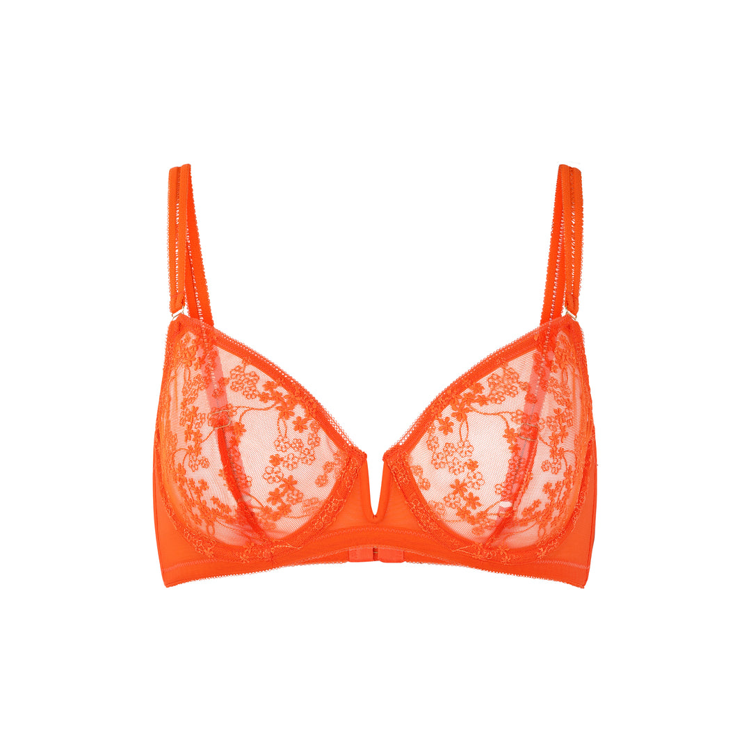 This underwire demi cut bra has been crafted from imported Swiss stretch lace for a supremely delicate finish. Deep V-cut style for extra support and slight push up. A fun pop of color to add to your Spring/Summer wardrobe!