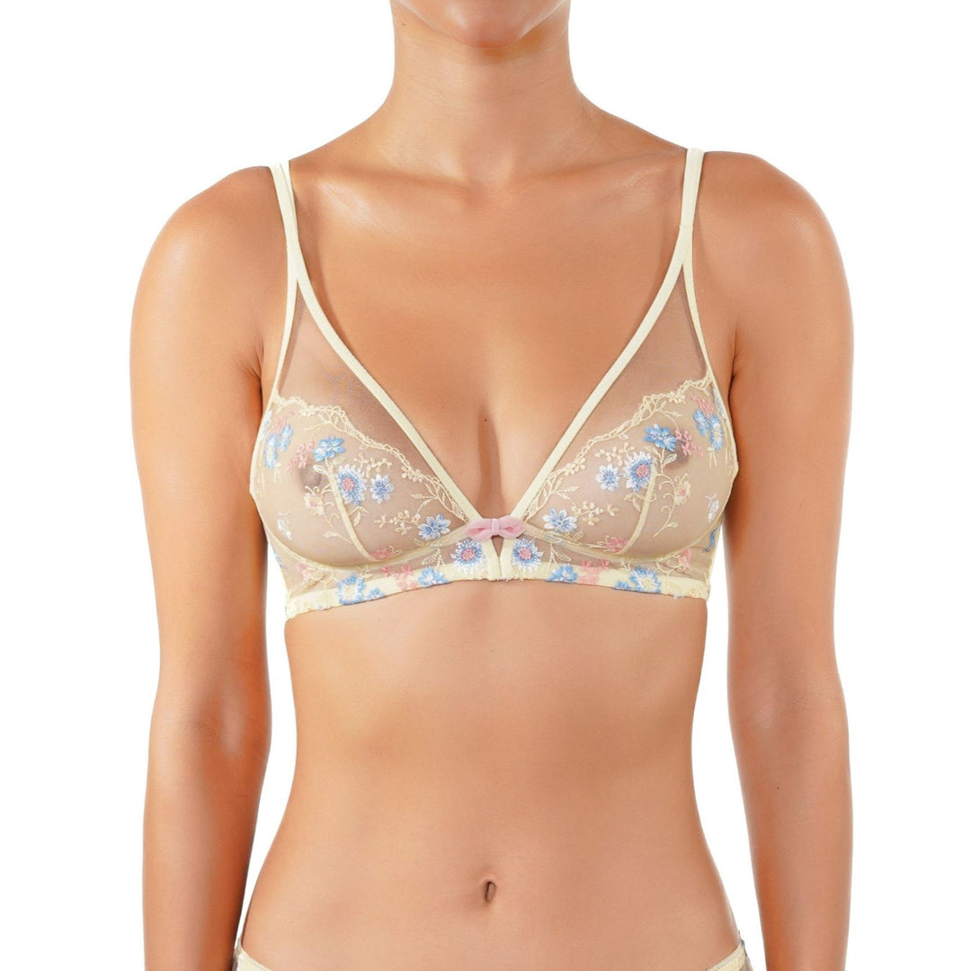 The newly launched Amour d'ete Collection from Huit Paris, has arrived just in time for Spring! This exquisite collection has been created using the highest level of craftsmanship, also keeping in mind the quality of our imported materials. Designed to provide light support and a beautiful silhouette, this bralette features intricate floral embroidery of daisies and magnolias, over tulle, making it an ideal choice for both everyday wear.