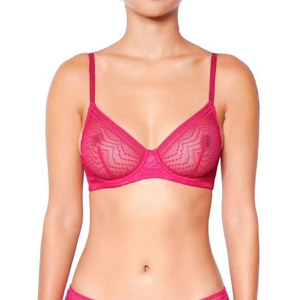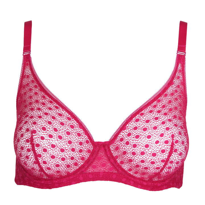 A classic underwired silhouette that supports and lifts with unique Huit construction and adjustable straps. A celebration of sweet romance, the popular Daisy collection from Huit is a harmony of refined fabrics and delicate detailing. Crafted stretch dot lace from Switzerland, this soft, ultra-supportive underwire bra, presents an eye-catching look with a comfortable fit.