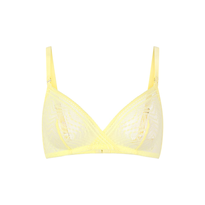 The popular Eclatante Collection from Huit has a new color! This graphic print stretch lace wireless bralette is a bold and stylish lingerie piece that combines modern design elements with comfortable support. The new eye-catching bralette from the Eclatante Soleil line seamlessly fuses fashion and function, making it a standout choice for those who appreciate unique, contemporary lingerie.