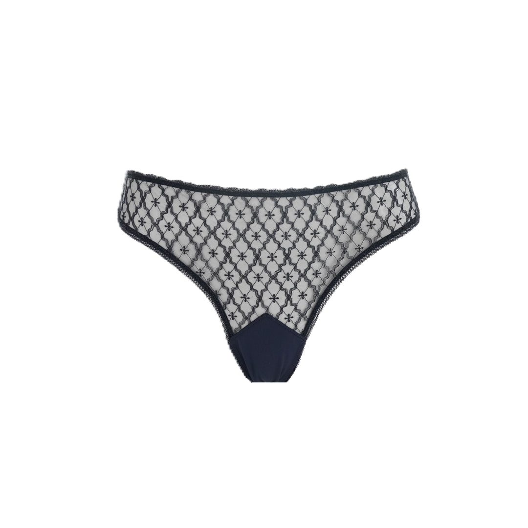 The new Eclipse Collection Tanga is a striking blend of modern design and everyday elegance. Crafted for both style and comfort, it features bold geometric print lace on the front, adding a contemporary twist to classic lingerie. The sleek, low-rise silhouette offers a flattering fit, while the soft, stretch fabric ensures all-day wearability.
